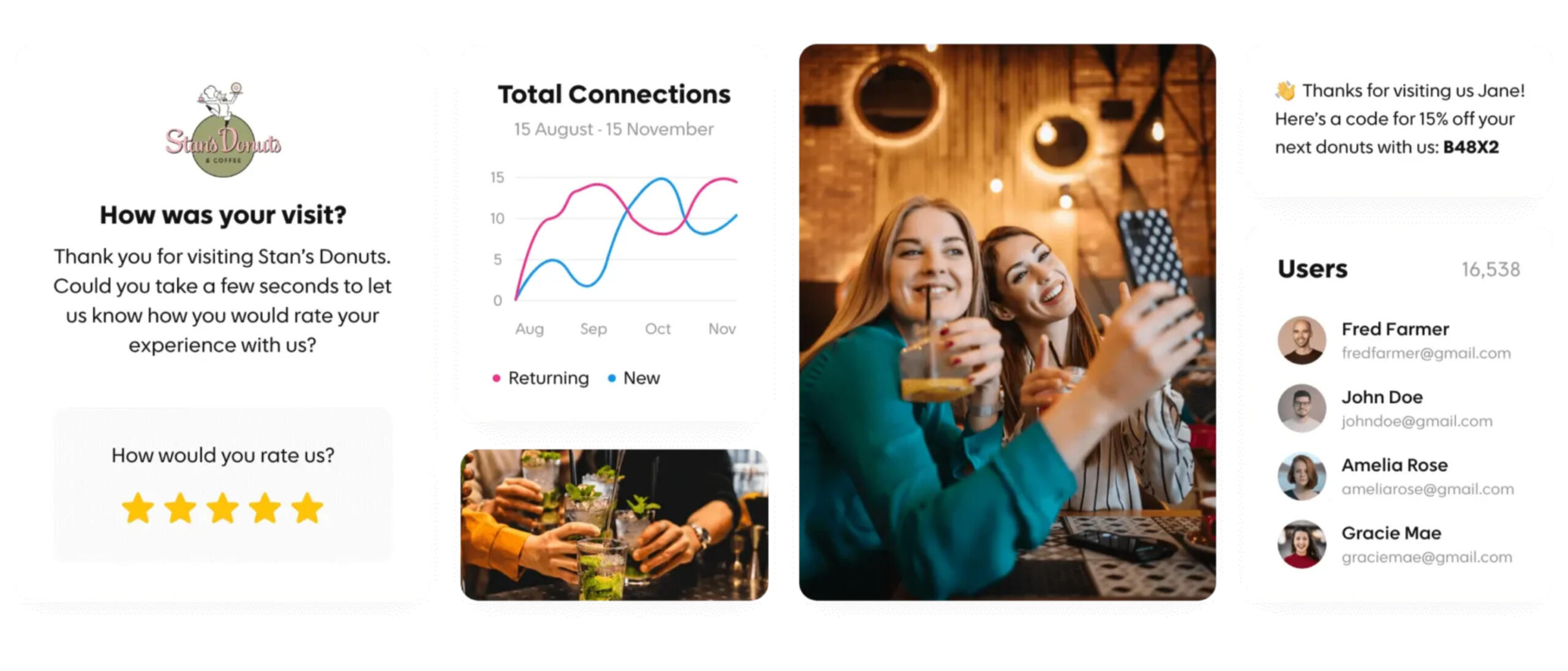Offer branded guest WiFi, capture emails, and drive repeat visits.